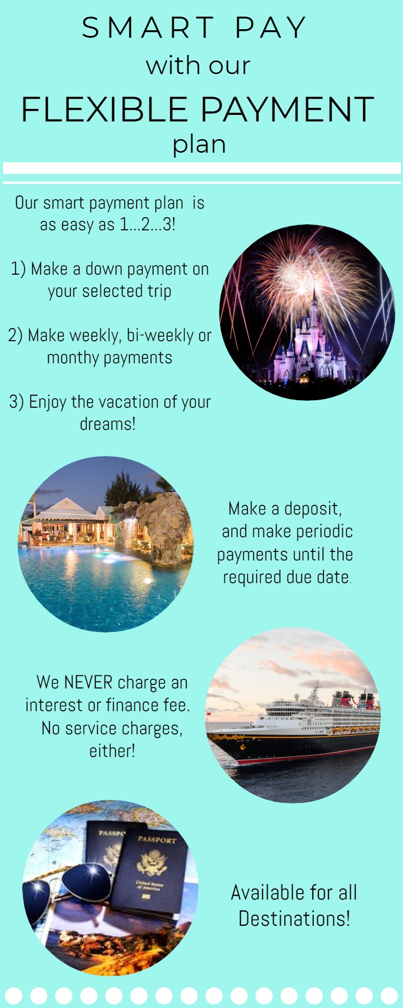 Whether it's to Disney World, an all-inclusive Caribbean Resort, a Cruise on the open seas, or just needing someone to take care of all the details for you, I'm just a call or email away! Never any fees for quotes or services. Let me guide you to a vacation you'll LOVE!