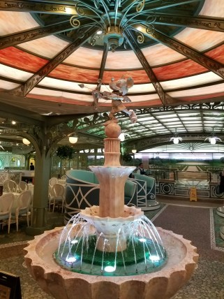 On a Disney Cruise, you have just a few restaurants, but honestly, the theming is superb and very comparable to a Disney World restaurant, if not better in some cases!Β And the food is FABULOUS!Β No “typical cruise food” on Disney Cruises!Β Every thing from the buffet items, to the cocktails, to the specialty restaurants menu items are absolutely delicious.Β And the service is what you would expect from Disney – first class all the way.Β On Disney they have what is called rotational dining. This isΒ where you eat in a different restaurant each night, but your waitstaff follows you. They get to know you. They have things like your child’s chocolate milk on the table waiting for them when they sit down.Β There aren’t any character meals as of right now, but with new restaurants being added to current ships, and new ships on the way, who knows?Β And the food is included – no need to say no to dessert!
